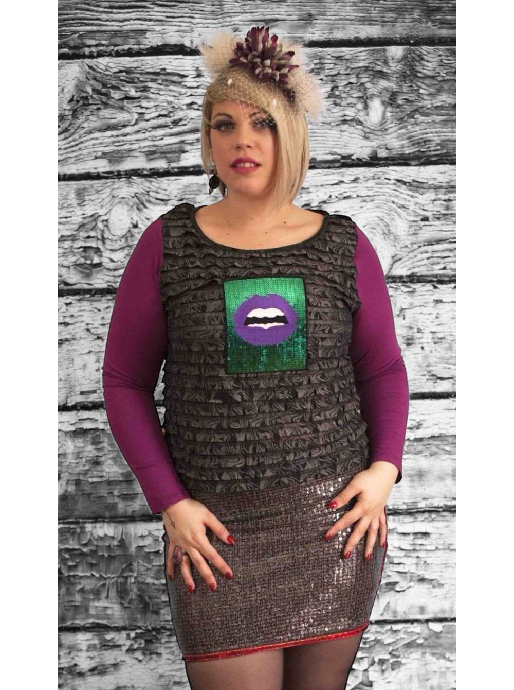 haut inspiration 70's avec applique bouche paillettes